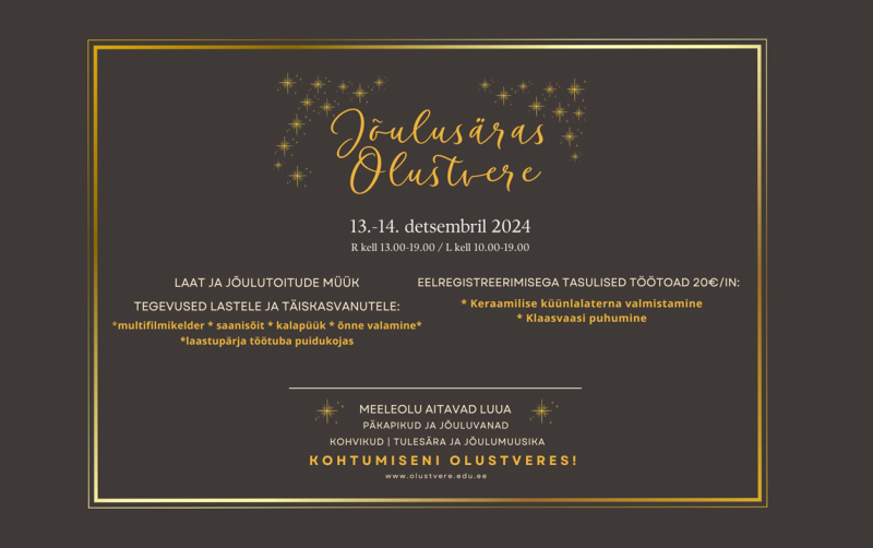 Info ja registreerimine: klaas@olustveremois.ee, 5091710