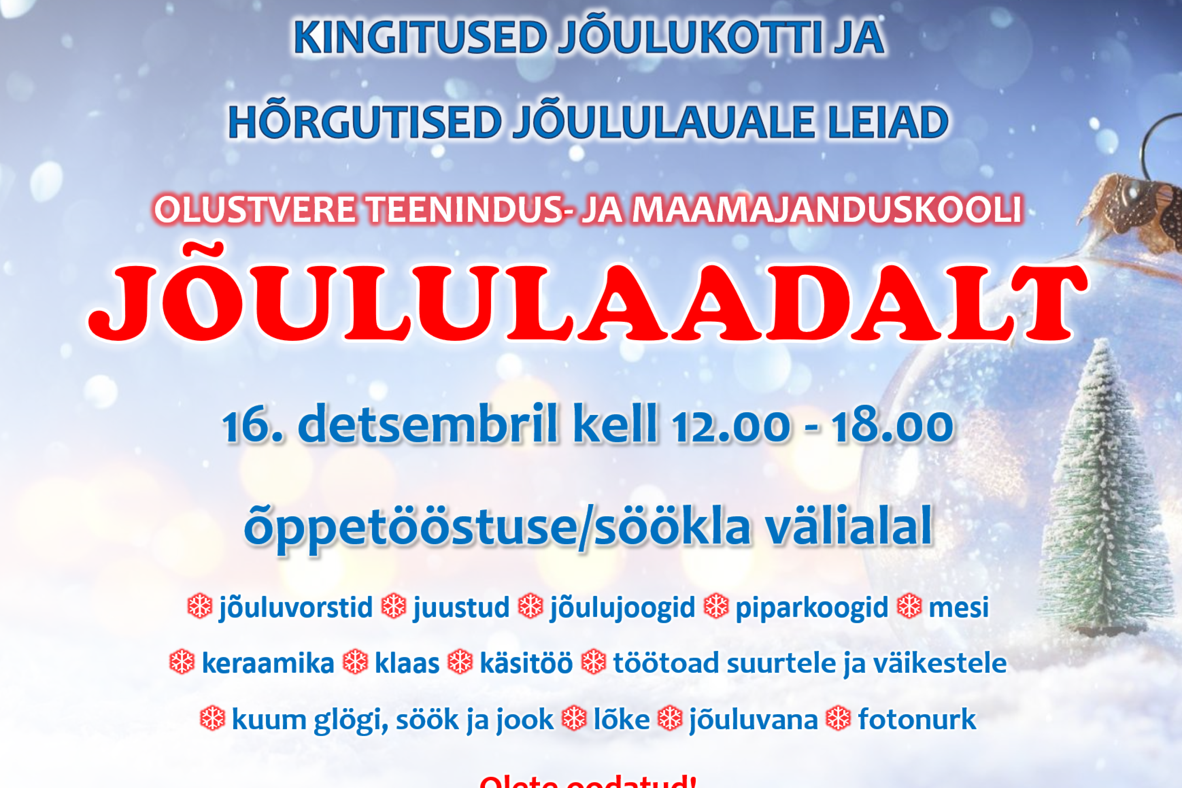 16.detsembril 2021 toimus Olustvere TMK õppetööstuse/söökla välialal jõululaat.