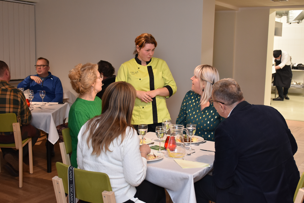Teisipäeva pealelõunal ootasid toitlustuskorralduse eriala õppijad kooli õppeköögi serveerimisruumis külalisi tunnis valmistatud roogasid maitsma. Tunnustatud koka Rudolf Visnapuu juhendamisel valmistatud toitudest pakuti külalistele tervituseks jõevähki kõrvitsaga, eelroaks lõhe jogurtis, põhiroog koosnes pardist ja viigimarjadest. Toiduelamuse lõpetas šokolaad ja passion. Õppijatele oli see rohkelt uute tarkuste ja kogemuste omandamise koolipäev.